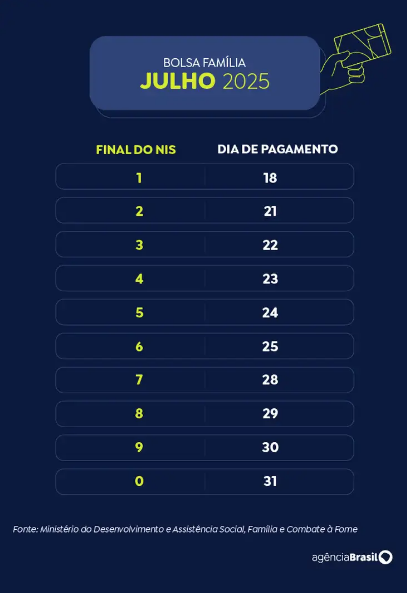 Caixa Econômica Federal paga nessa quarta-feira (23) a parcela de julho do Bolsa Família aos beneficiários com Número de Inscrição Social (NIS) de final 4.